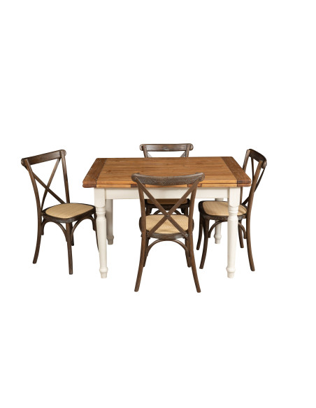 Szék, szélessége 42 cm, mélysége 44 cm, magassága 88 cm, Thonet stílusban, tömör kőrisből, keresztezett háttámlával. Bisztró kialakításának köszönhetően ideális bármely helyiség vagy helyszín vintage stílusú berendezéséhez, a kényelem feláldozása nélkül. A padlótól az ülőfelületig 46 cm magas.