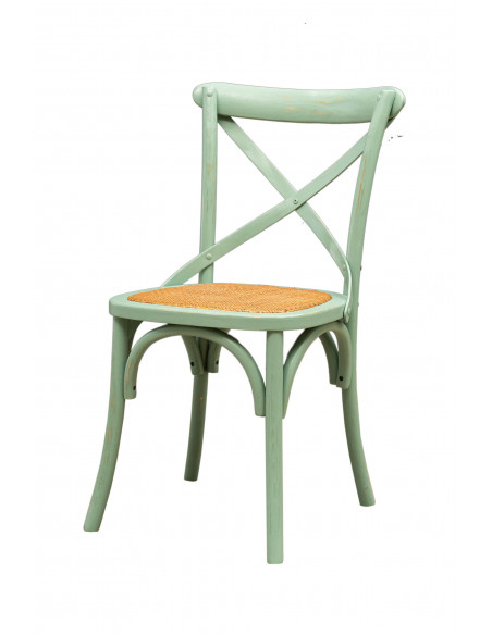 Thonet Cross szék tömör fából és rattan ülőfelülettel, antik zöld kivitelben