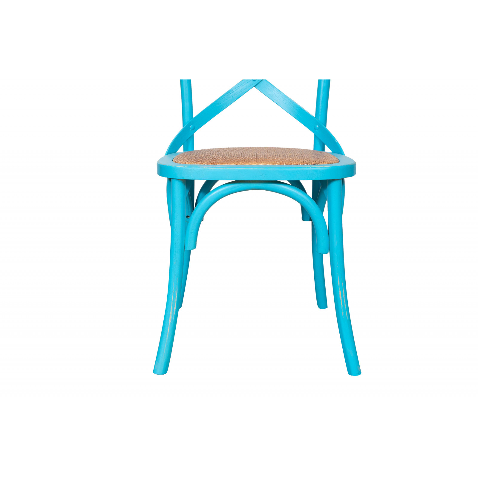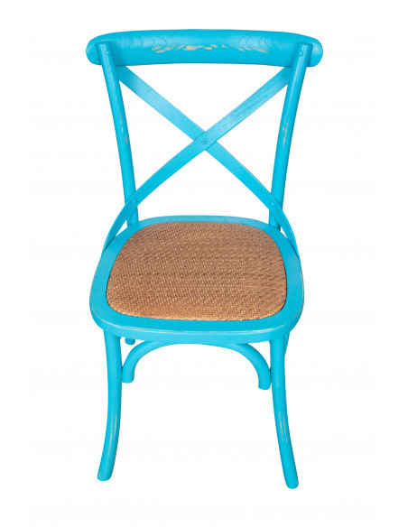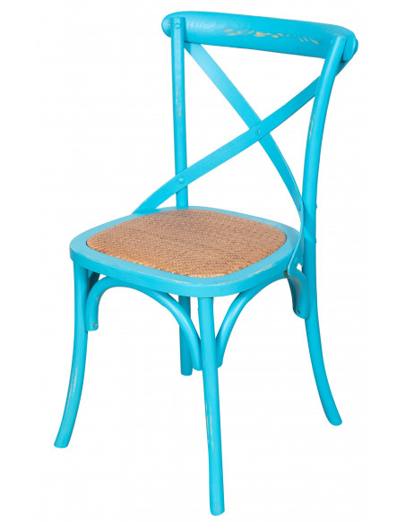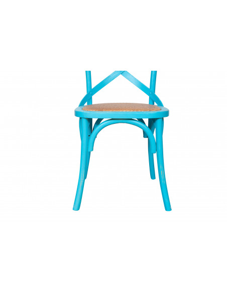Thonet Cross szék tömör fából és rattan ülőfelülettel, antikolt kék kivitelben