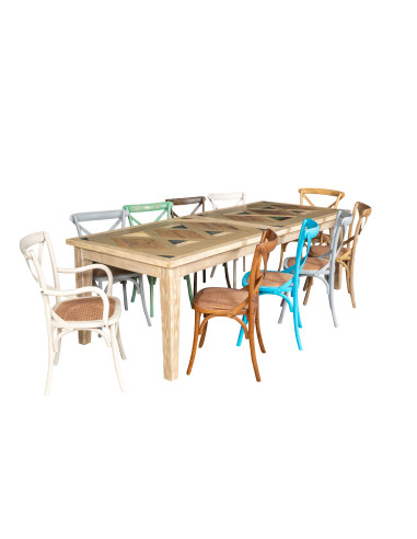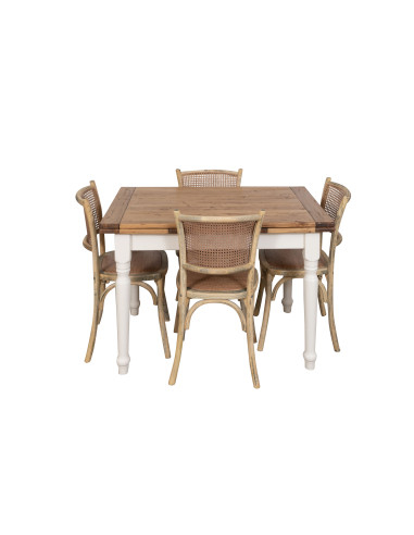 Tuolin leveys 48 cm, syvyys 52 cm, korkeus 88 cm Thonet-tyylistä massiivisaarta, ristikkäinen selkänoja ja kudottu rottinkikuituistuin. Bistrosuunnittelunsa ansiosta ne sopivat ihanteellisesti sisustamaan minkä tahansa ympäristön tai huoneen vintage-tyyliin mukavuudesta tinkimättä.Kaikki mitat viittaavat tuotteen enimmäiskokoon.