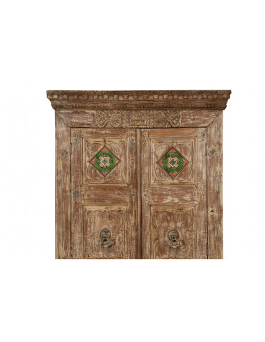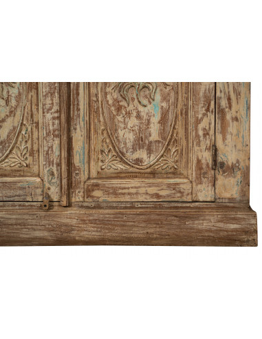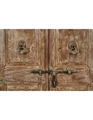 Nagyon masszív és tágas, 130 cm széles, 51 cm mély, 223 cm magas szekrény, amely a belső polcoknak köszönhetően sokoldalúan használható és nagy esztétikai hatással bír. Ez a bútordarab antik ajtóból készült, a könyvespolc pedig méretre készült tömör fából.