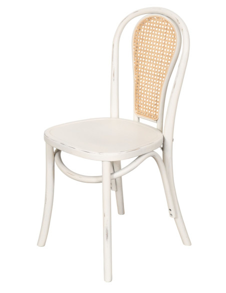 Tömörfa szék és bécsi szalmából készült háttámla, antik fehér kivitelben