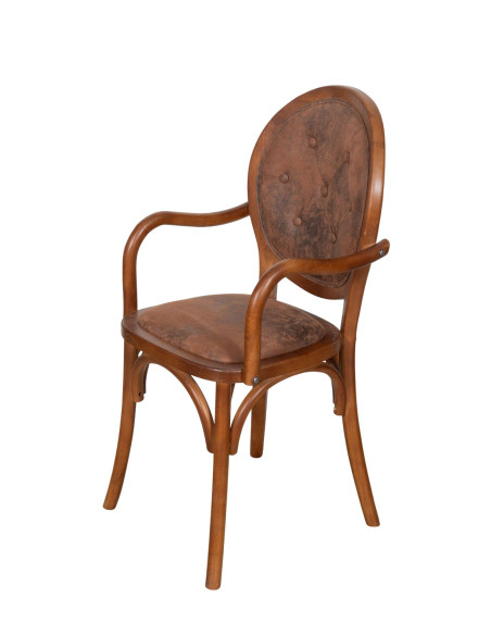 Tömörfa szék karfákkal és párnázott ülőfelülettel, sötét dió színű kivitelben