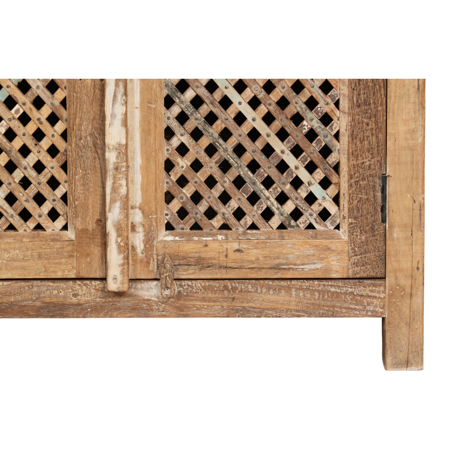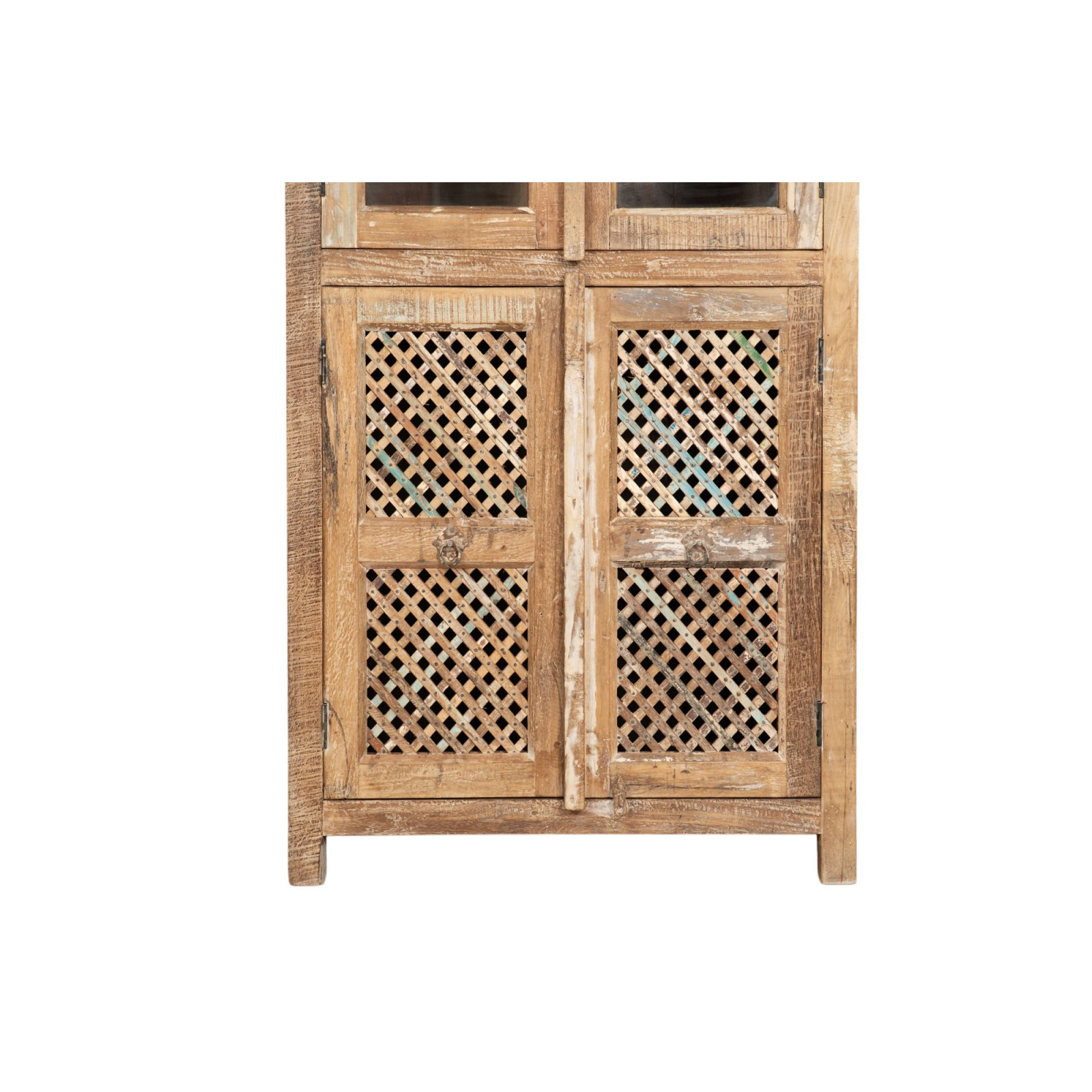 Újrahasznosított tömörfa vitrin antikolt kivitelben