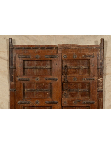 Portone/porta antica in legno massello di teak di dimensioni lunghezza 126 cm, profondità 11 cm, altezza 203 cm. Questo portone deriva da demolizioni e recuperi di antichi ed importanti fabbricati. Finemente restaurato e trattato anche per uso esterna, ogni porta è un pezzo di vero ed unico antiquariato. Tutte le misure si riferiscono all'ingombro massimo dell'articolo.