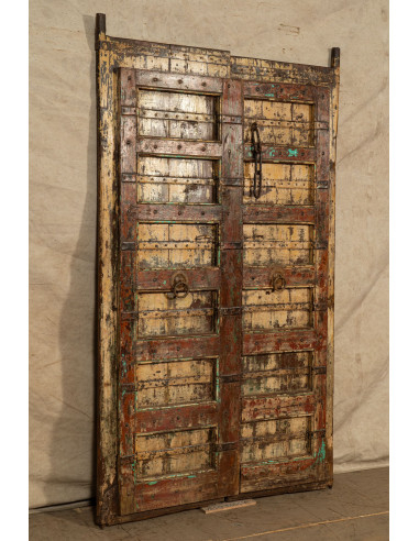 Porta portone in legno massello e ferro da interno o da esterno vecchia e antica medievale scorrevole