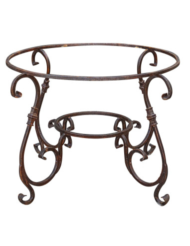 Molto robusta e resistente base per tavoli e consolle, ideale per piani molto pesanti tipo pietra, marmo ecc... Realizzata in ferro battuto forgiato a mano, le cui dimensioni sono diametro 127 cm e altezza 78 cm.
