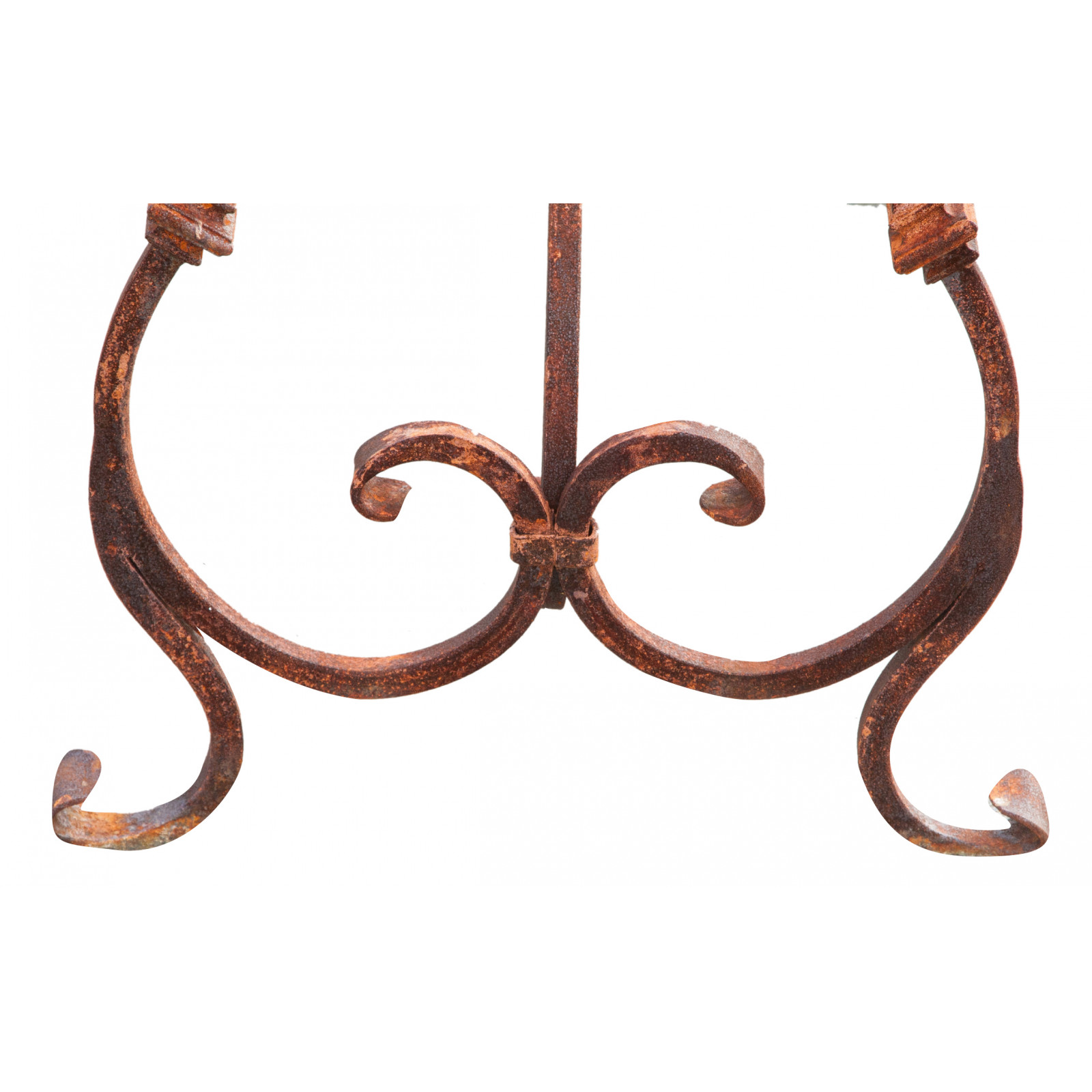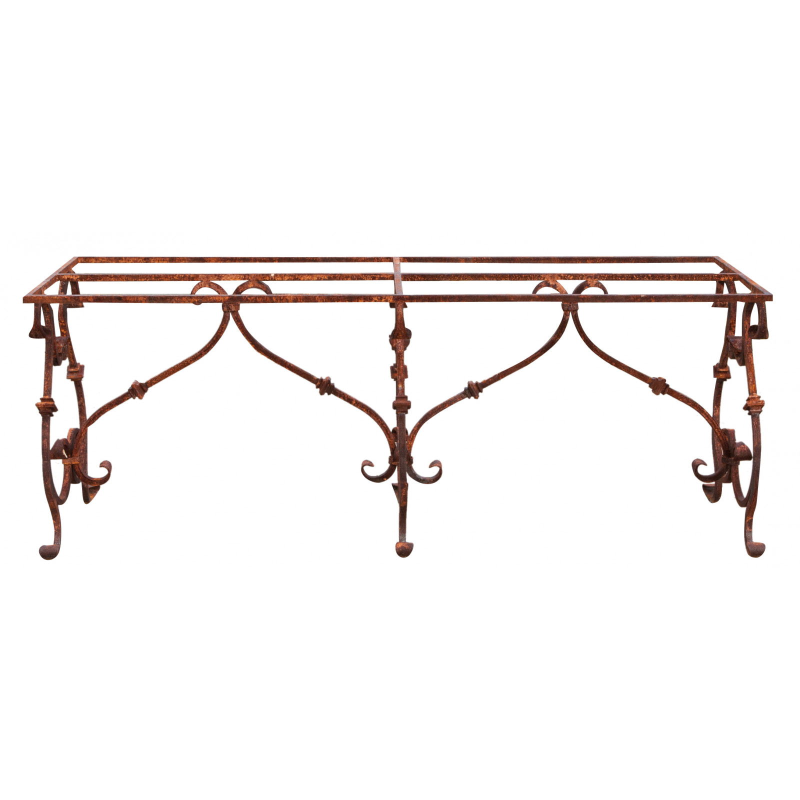 Base tavolo in ferro pieno forgiato a mano non trattato, lasciato al naturale. Struttura molto robusta e versatile, utilizzabile sia all'interno che all'esterno, atta a sopportare anche piani molto pesanti tipo marmo, pietra, ecc...