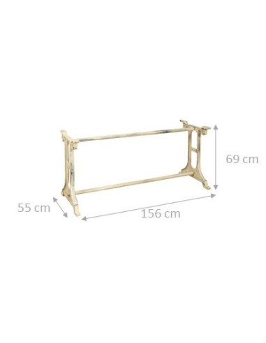 Molto stabile, robusta e pesante base per tavolo in ghisa di dimensioni larghezza 156 cm, profondità 55 cm, altezza 69 cm completamente fatta a mano, con un'accurata finitura completamente realizzata a mano, ottenendo un vero effetto antico.
