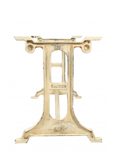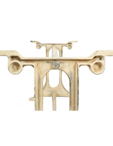 La base in ghisa, struttura portante di notevoli dimensioni, può supportare piani in pietra e marmo di grandi dimensioni, anche molto pesanti. La base è una copia fedele di un banco da lavoro di una vetreria inglese, chiusa nel 1860.