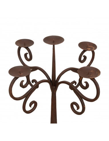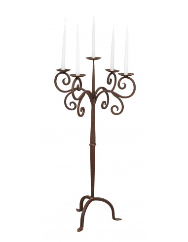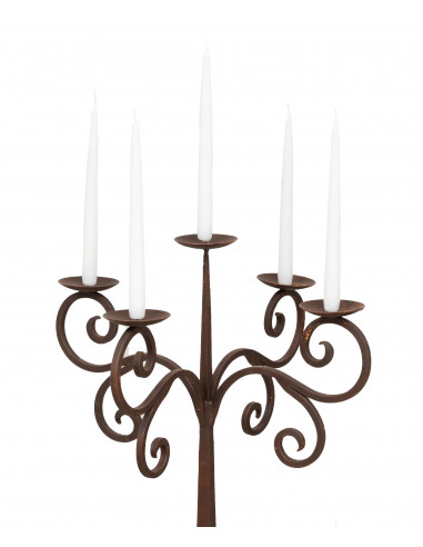 CANDELIERE A PIANTANA IN FERRO BATTUTO LAVORATO A MANO