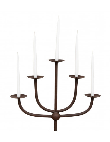 | Candeliere a piantana in ferro battuto di dimensioni lunghezza 54 cm, profondità 30 cm, altezza 100 cm finitura ruggine anticata. Tutte le misure si riferiscono all'ingombro massimo dell'articolo. |