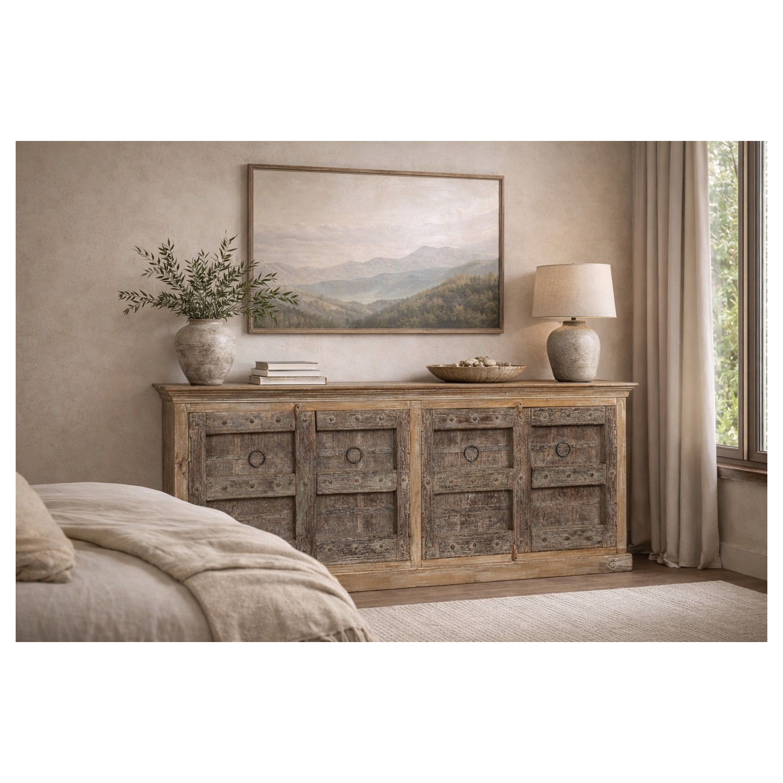 Credenza in legno massiccio riciclato finitura anticata L214XPR46xH90 cm