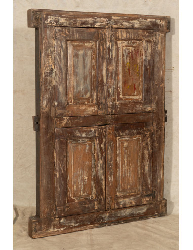 Finestra finestrina grata porta in legno massello e in ferro antica e vecchia con telaio da interno o da esterno
