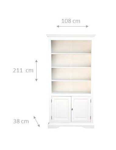 Libreria in legno massello di tiglio L108xPR38xH211 cm, meticolosamente rifinita grazie alla lavorazione artigianale Made in Italy e curata nei minimi dettagli, dispone di due funzionali ripiani chiusi con doppia anta nella parte inferiore e di quattro ripiani a giorno nella parte superiore. La sua imponente eleganza e semplicità ne fanno un ideale completamento per qualsiasi ambiente in stile Country.