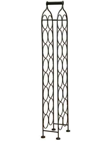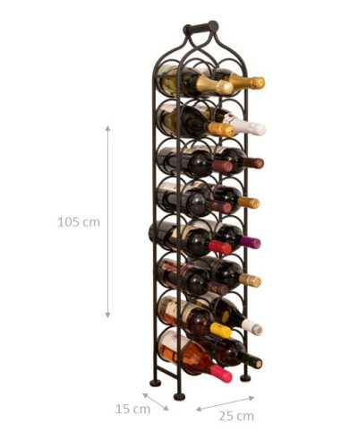 Molto stabile e robusta cantinetta portabottiglie di dimensioni 25 cm di larghezza, 15 cm di profondità, 105 cm di altezza realizzata in ferro battuto pieno. Con una capienza di 16 bottiglie, rappresenta un funzionale e pratico complemento d'arredo per ogni ambiente.