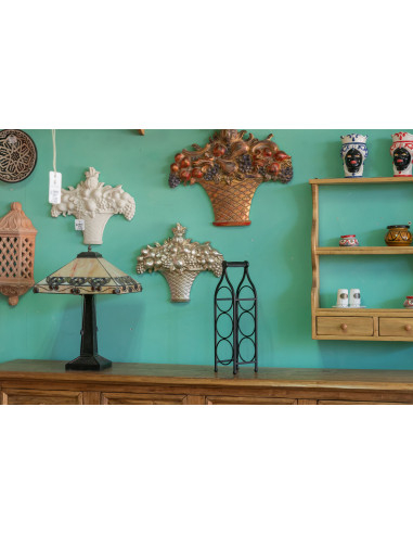 Cantinetta portabottiglie di dimensioni larghezza 13 cm, profondità 14 cm, altezza 46 cm realizzata in ferro battuto pieno. Con una capienza di 3 bottiglie, la cantinetta rappresenta un funzionale e pratico complemento d'arredo per ogni ambiente.