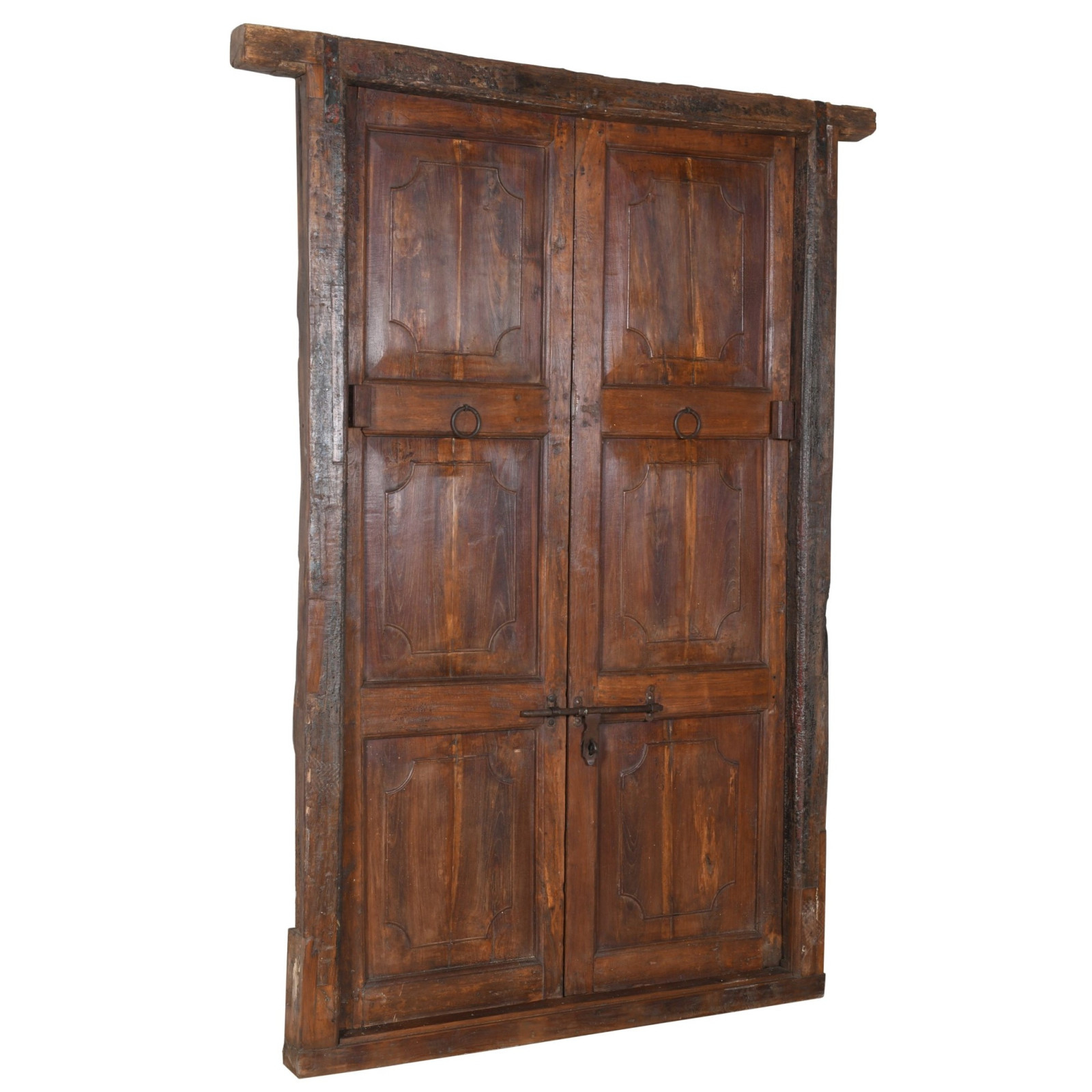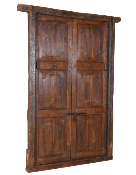 Porta portone in legno massello e ferro da interno o da esterno vecchia e antica medievale con telaio