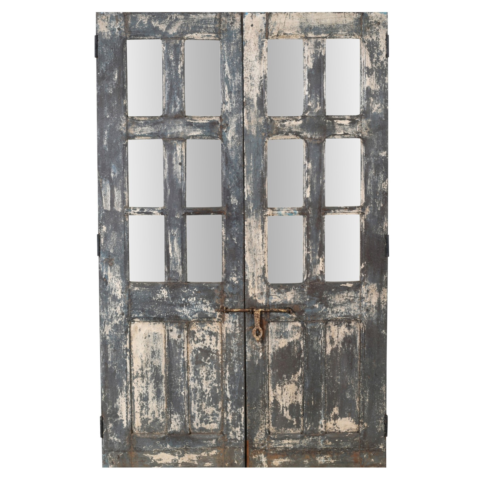 Porta portone in legno massello e ferro da interno o da esterno vecchia e antica medievale con vetro