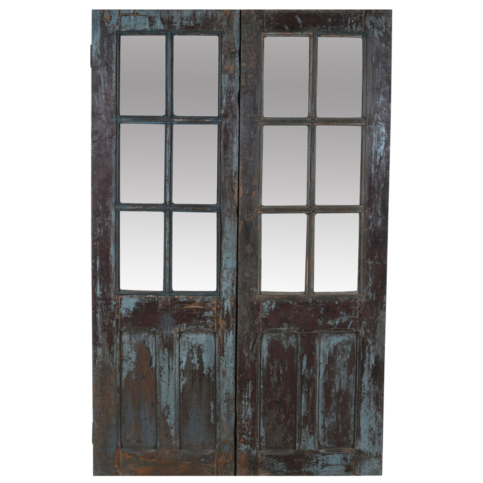Porta portone in legno massello e ferro da interno o da esterno vecchia e antica medievale con vetro