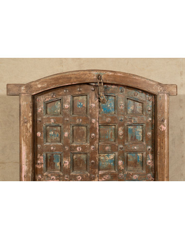 Portone/porta antica in legno massello di teak di dimensioni lunghezza 139 cm, profondità  27 cm, altezza 200 cm. Questo portone deriva da demolizioni e recuperi di antichi ed importanti fabbricati. Finemente restaurato e trattato anche per uso esterna, ogni porta è un pezzo di vero ed unico antiquariato. Tutte le misure si riferiscono all'ingombro massimo dell'articolo.