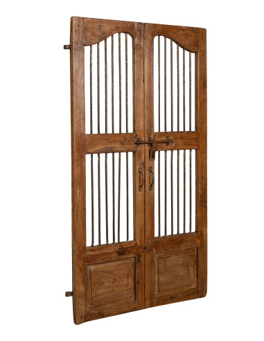 Portone/porta antica in legno massello di teak di dimensioni lunghezza 123 cm, profondità 7 cm, altezza 184 cm. Questo portone deriva da demolizioni e recuperi di antichi ed importanti fabbricati. Finemente restaurato e trattato anche per uso esterna, ogni porta è un pezzo di vero ed unico antiquariato. Tutte le misure si riferiscono all'ingombro massimo dell'articolo.