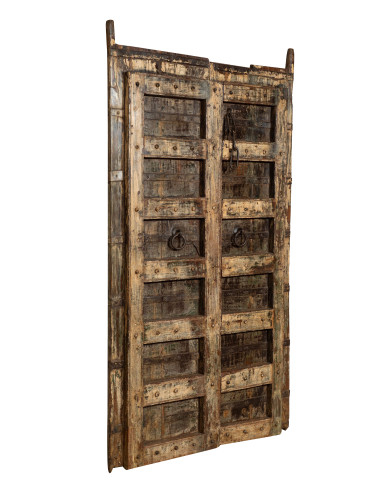 Porta portone in legno massello e ferro da interno o da esterno vecchia e antica medievale scorrevole