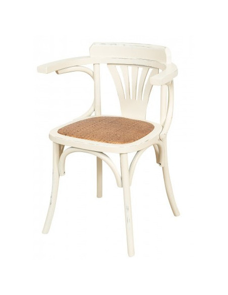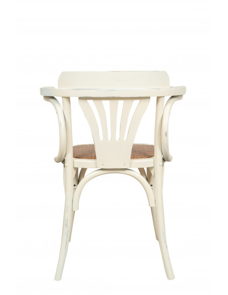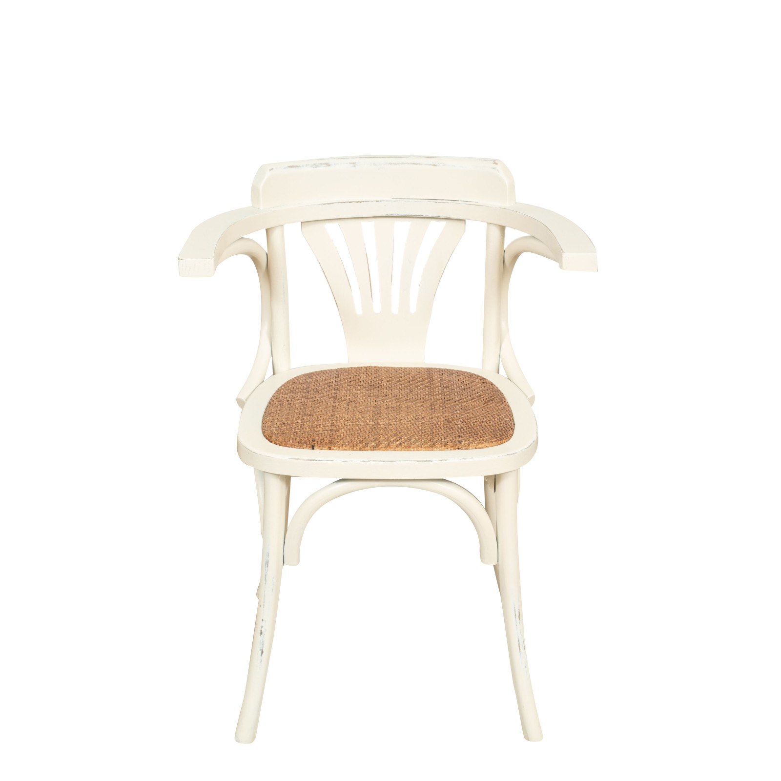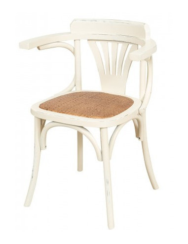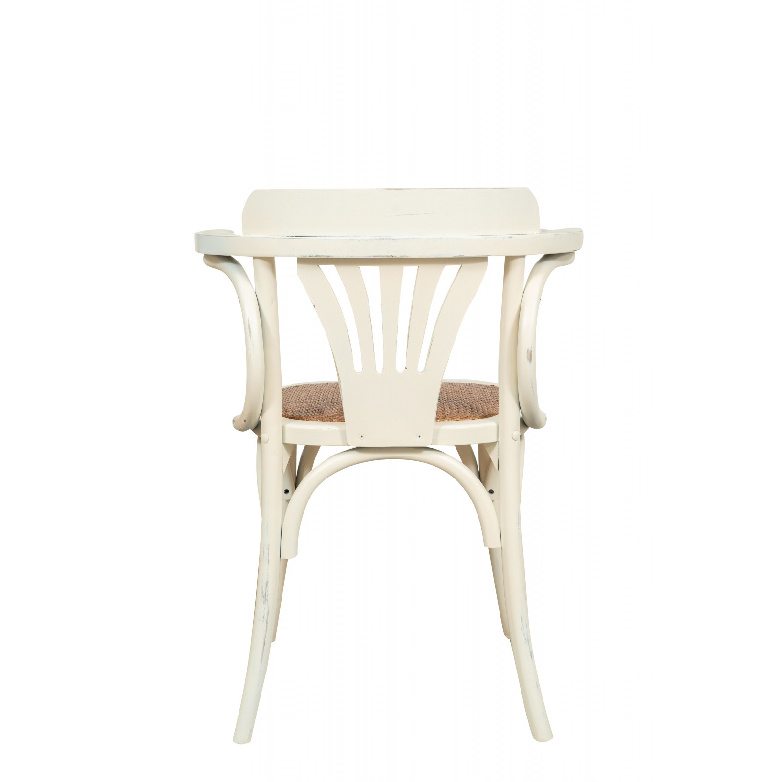 Sedia con braccioli Thonet in massello di frassino finitura bianca anticata e seduta in rattan