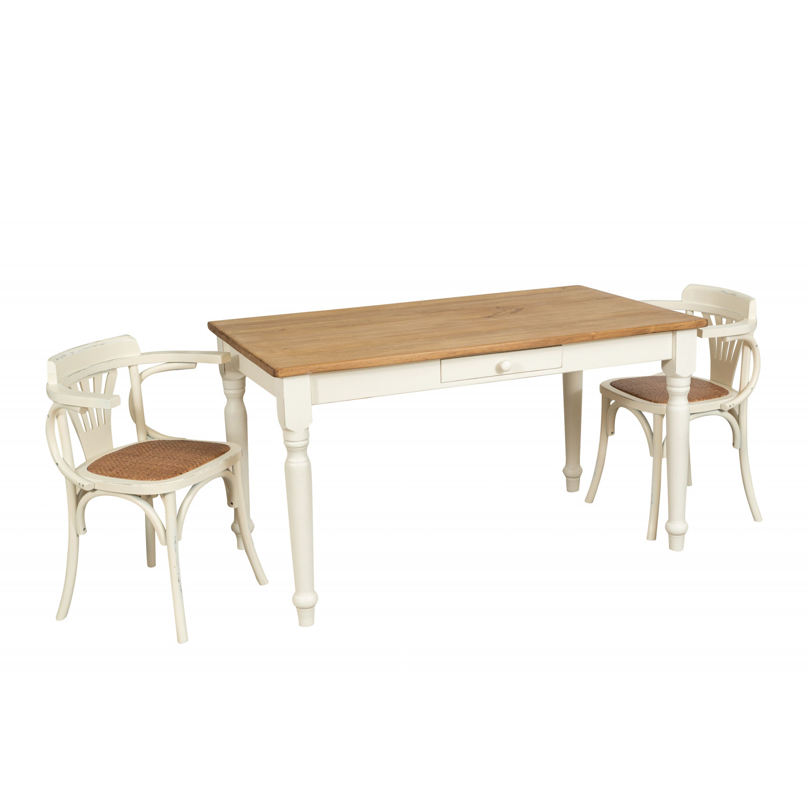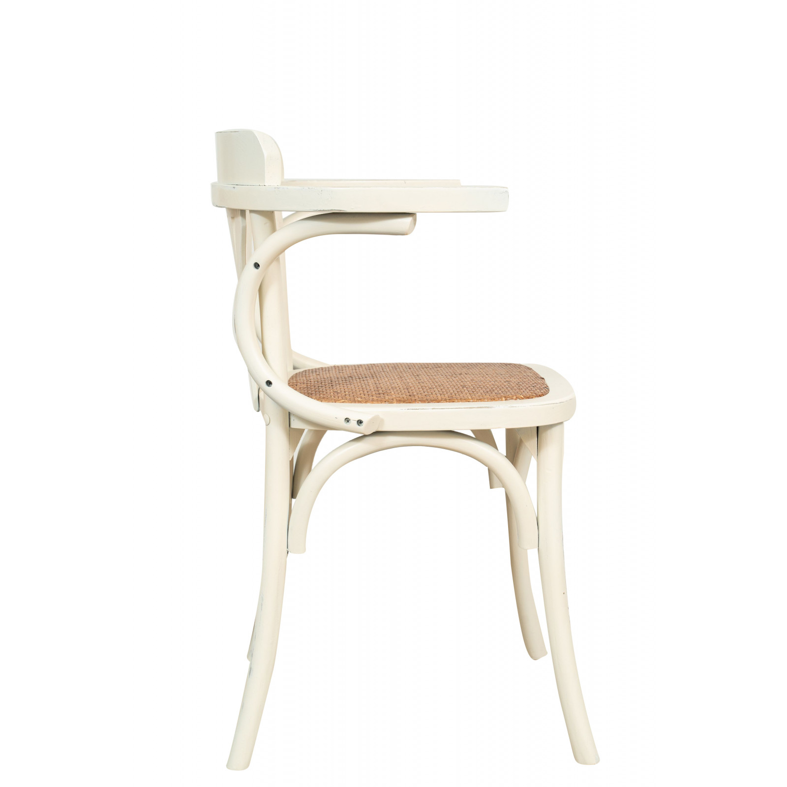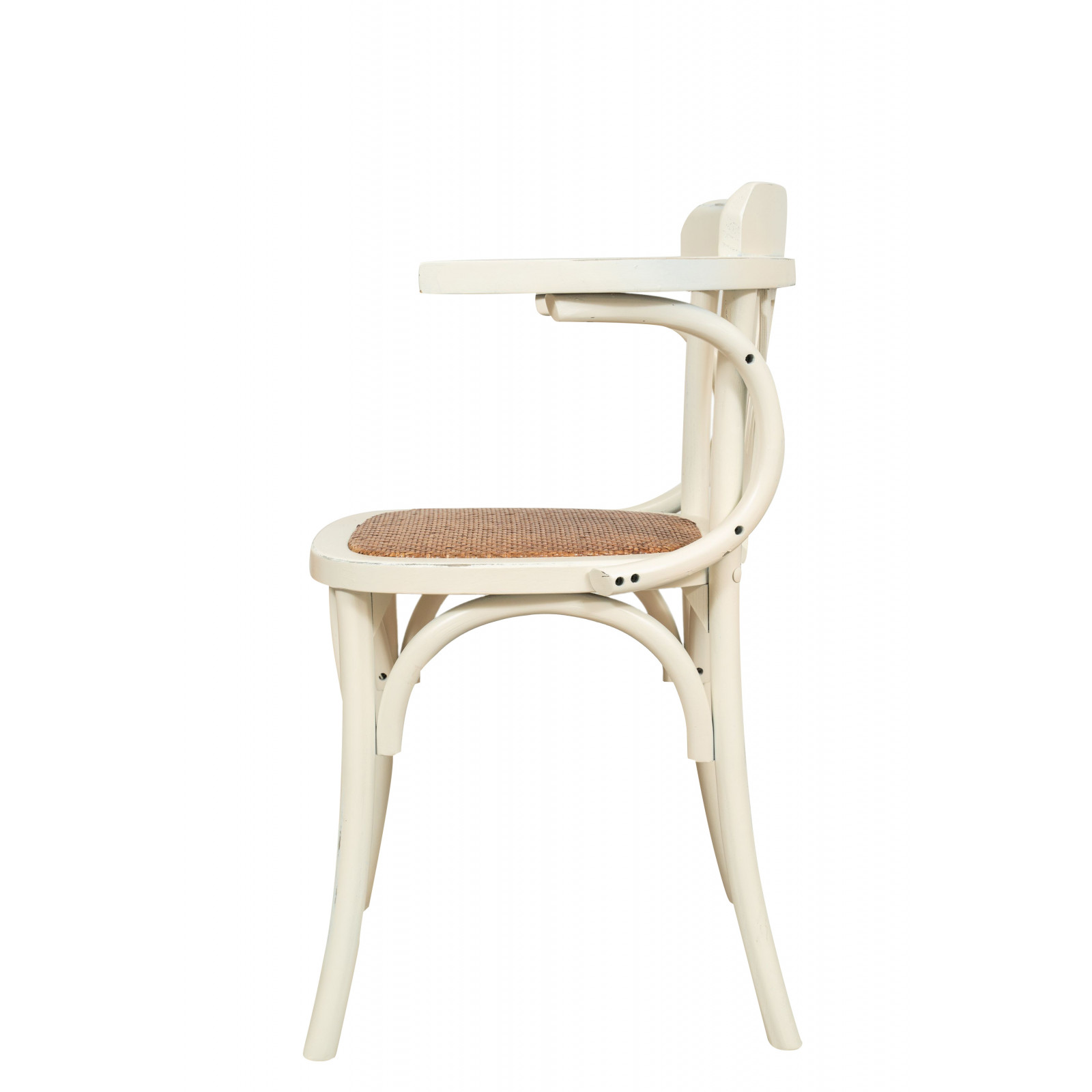 Sedia con braccioli Thonet in massello di frassino finitura bianca anticata e seduta in rattan