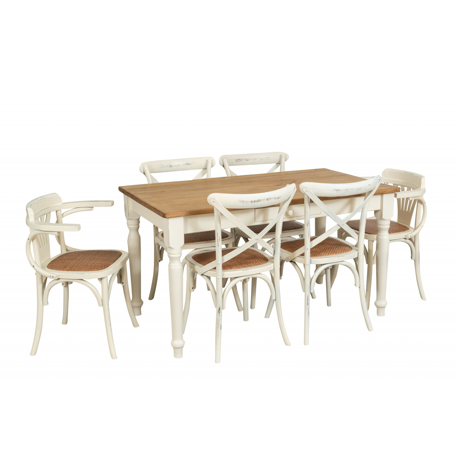 Sedia larghezza 48 cm, profondità 52 cm, altezza 88 cm in stile Thonet realizzata in massello di frassino con schienale incrociato e seduta in fibra di rattan intrecciata. Grazie al suo design da bistrot è ideale per arredare in stile vintage qualsiasi ambiente o locale, senza rinunciare alla comodità.Tutte le misure si riferiscono all'ingombro massimo...