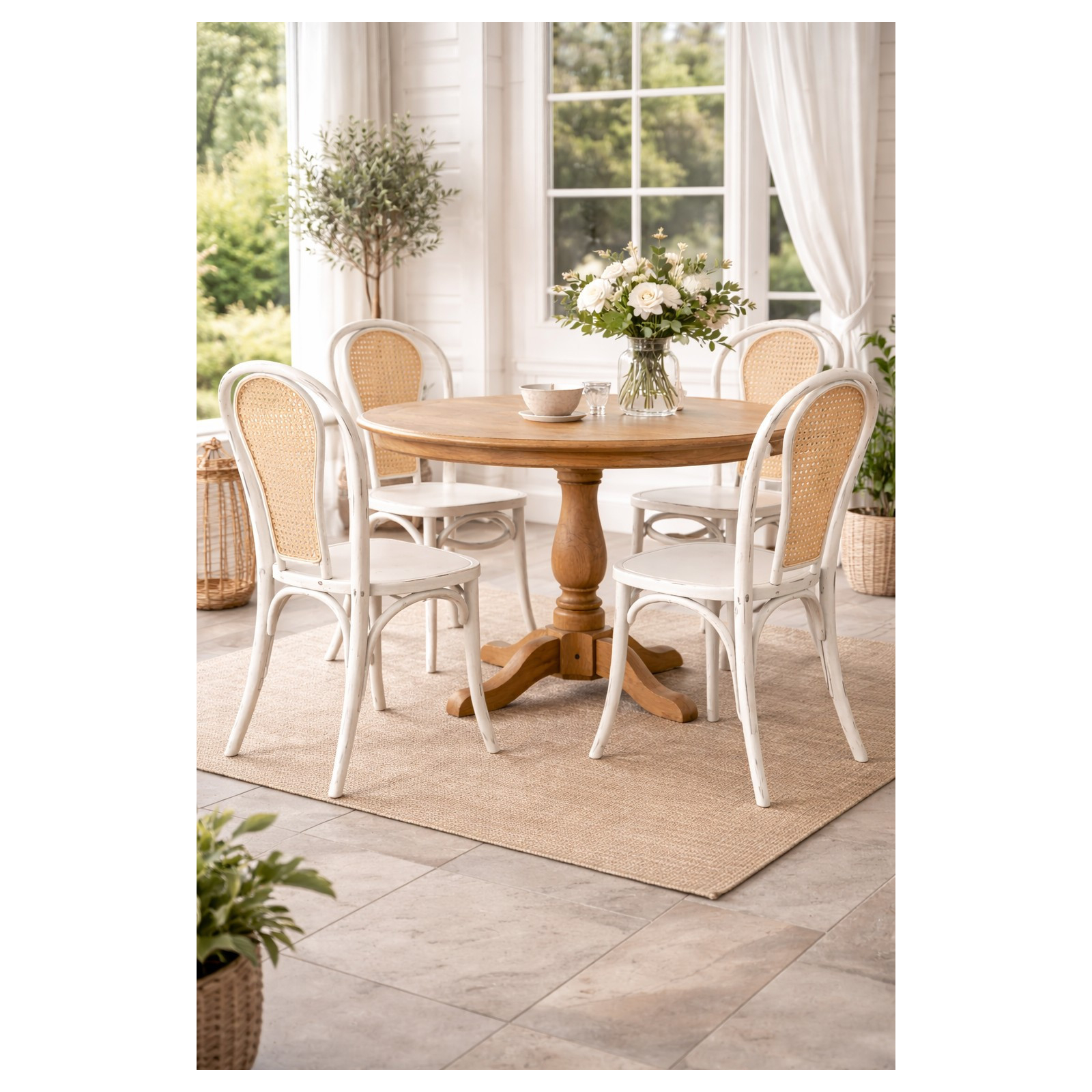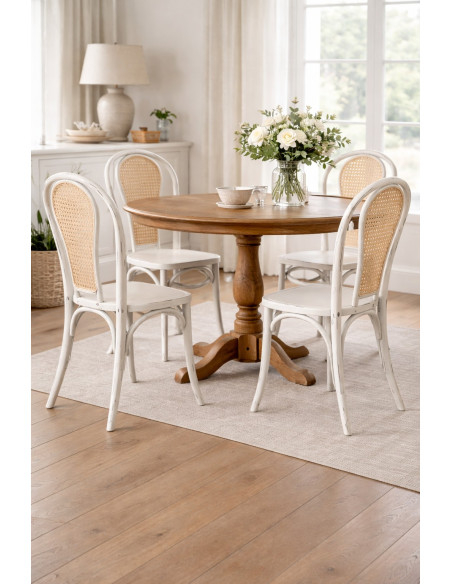 Sedia in legno massello e schienale in paglia di Vienna finitura bianca anticata