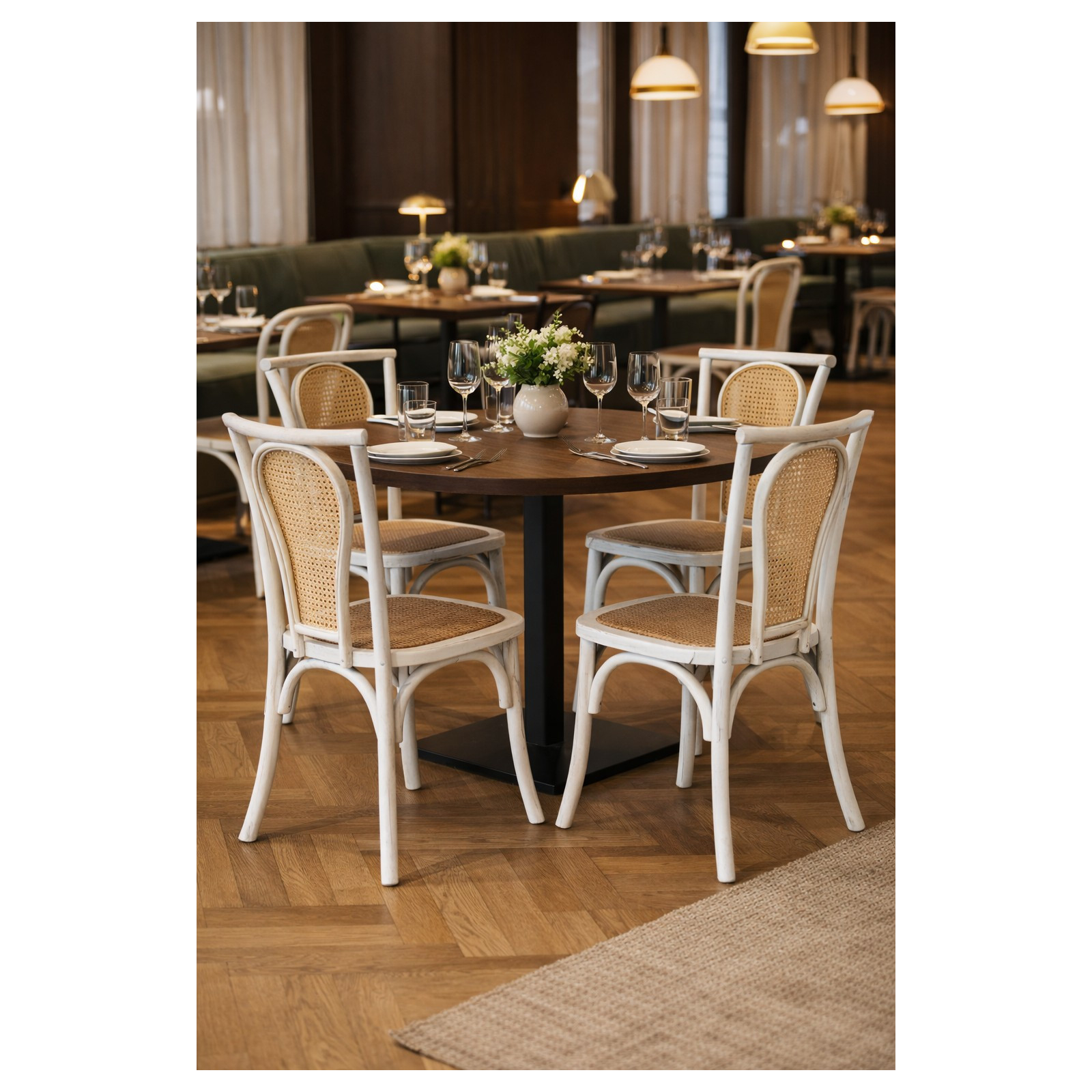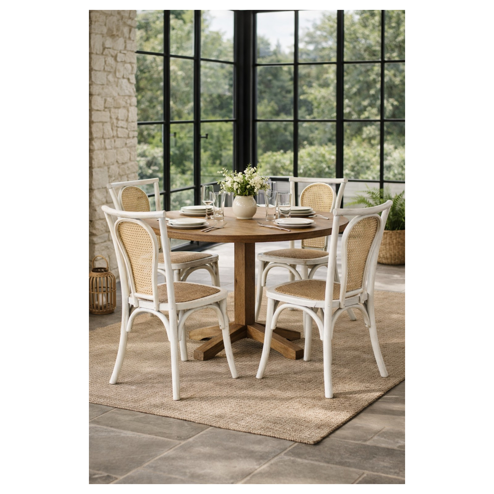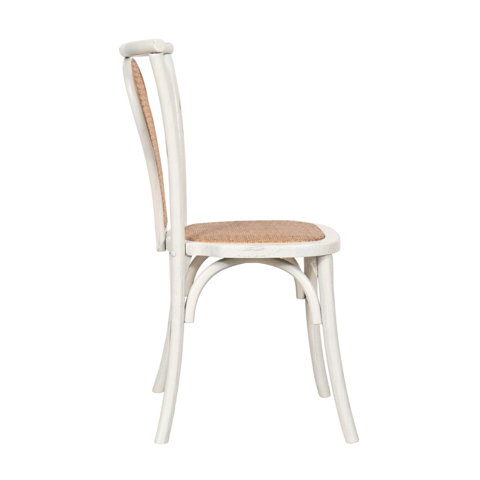 Sedia in legno massello e schienale in paglia di Vienna finitura bianca anticata
