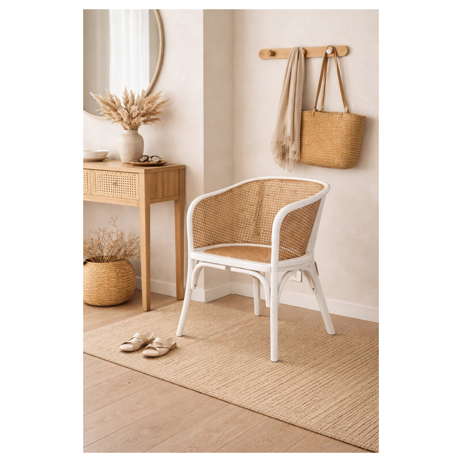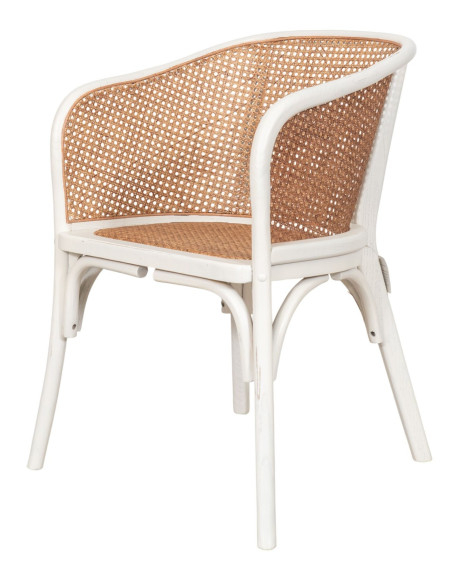 Sedia in legno massello e seduta in rattan finitura bianca anticata