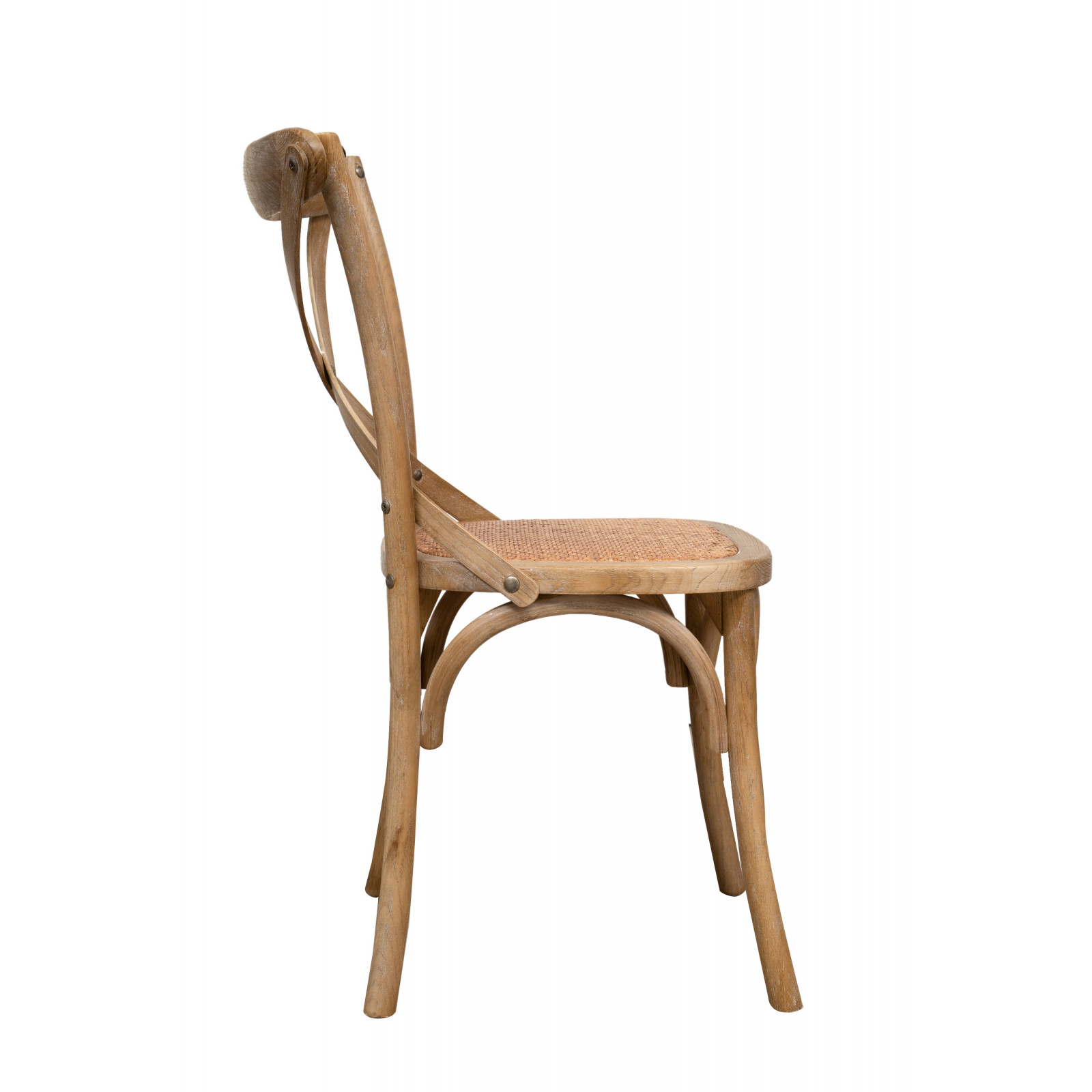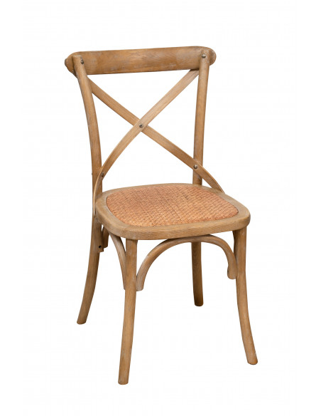 Sedia Thonet Cross in massello e seduta in rattan finitura legno invecchiato