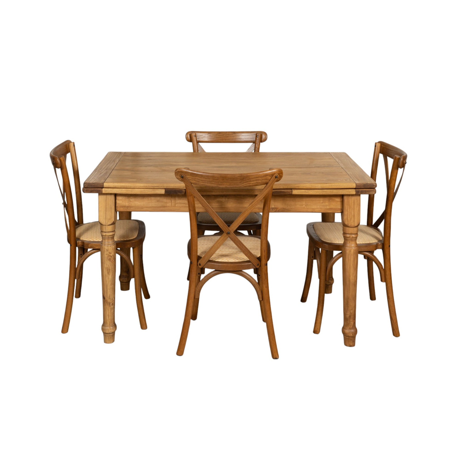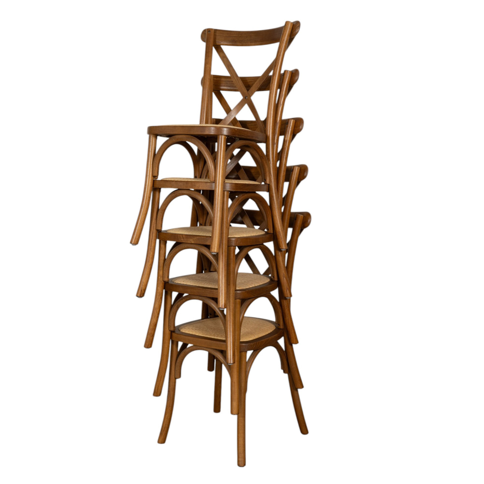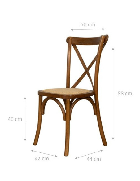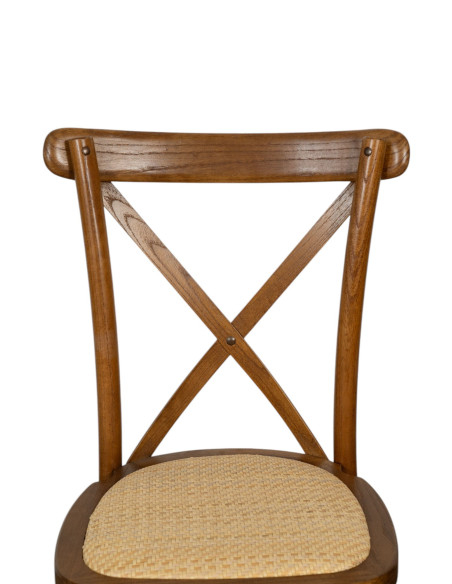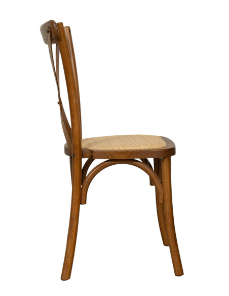 Sedia Thonet Cross in massello e seduta in rattan finitura legno invecchiato impilabili