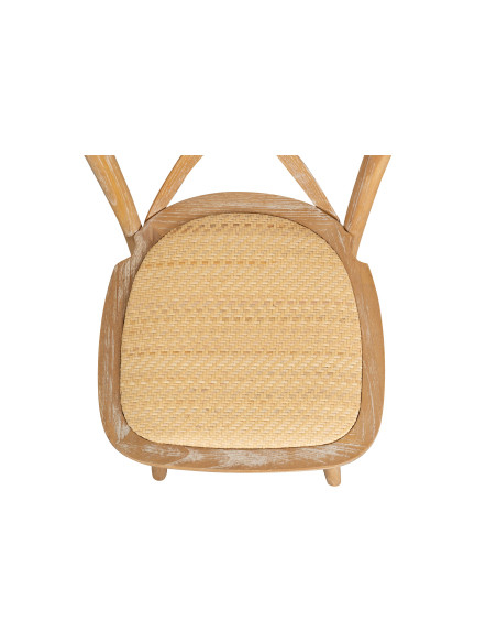 Sedia larghezza 48 cm, profondità 52 cm, altezza 88 cm in stile Thonet realizzata in massello di frassino con schienale incrociato e seduta in fibra di rattan intrecciata. Grazie al suo design da bistrot è ideale per arredare in stile vintage qualsiasi ambiente o locale, senza rinunciare alla comodità.Tutte le misure si riferiscono all'ingombro massimo...