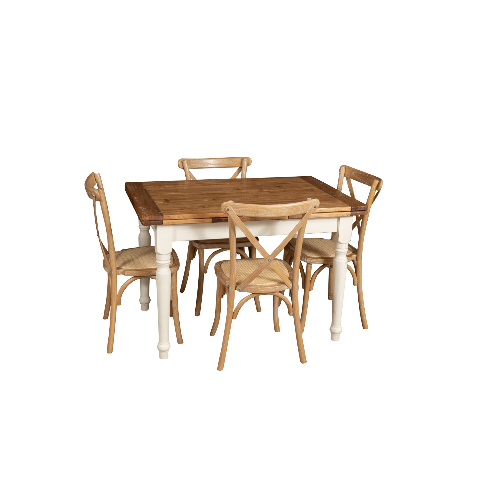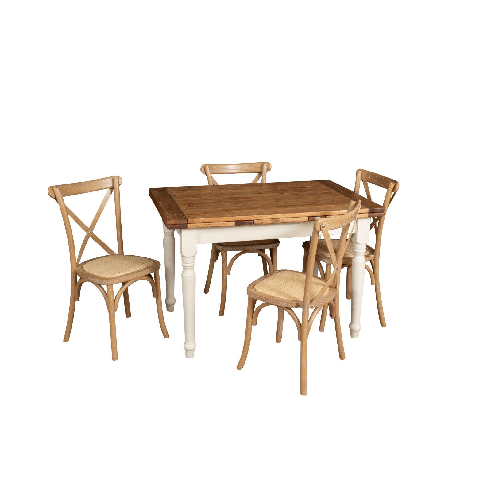 Tavolo rettangolare allungabile realizzato interamente in legno massello di tiglio dotato di due pratiche allunghe da 45 cm ciascuna che permettono di estenderlo fino a 185 o 230 cm. Tutto il fascino dello stile Country è racchiuso in questo tavolo grazie alle forme classiche, risultato di una scrupolosa lavorazione artigianale Made in Italy.Misure:...