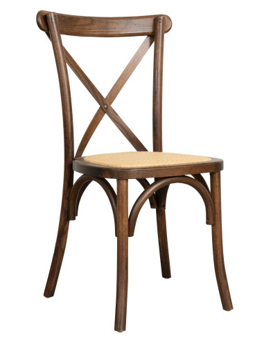Sedia Thonet Cross in massello e seduta in rattan finitura noce impilabili