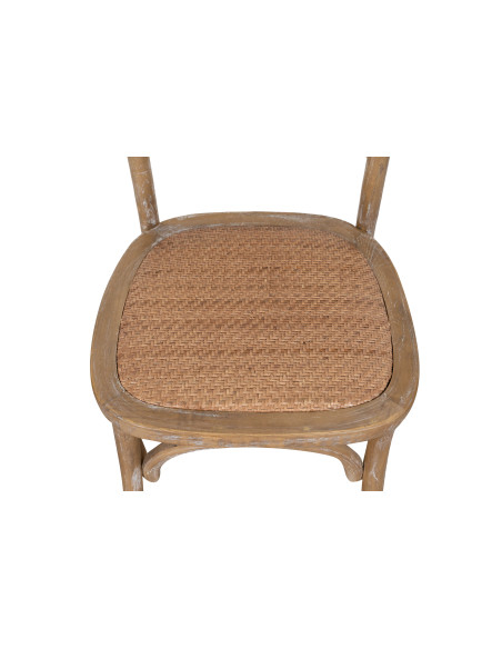 Sedia larghezza 48 cm, profondità 52 cm, altezza 88 cm in stile Thonet realizzata in massello di frassino con schienale incrociato e seduta in fibra di rattan intrecciata. Grazie al suo design da bistrot è ideale per arredare in stile vintage qualsiasi ambiente o locale, senza rinunciare alla comodità.Tutte le misure si riferiscono all'ingombro massimo...
