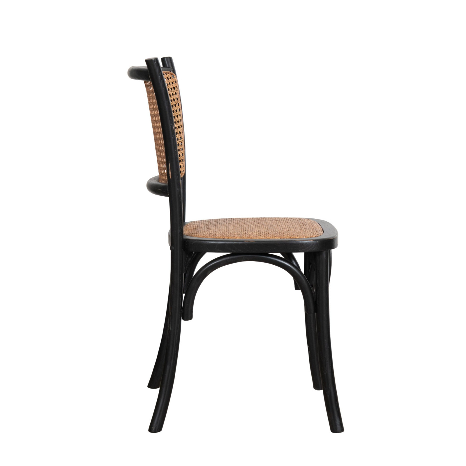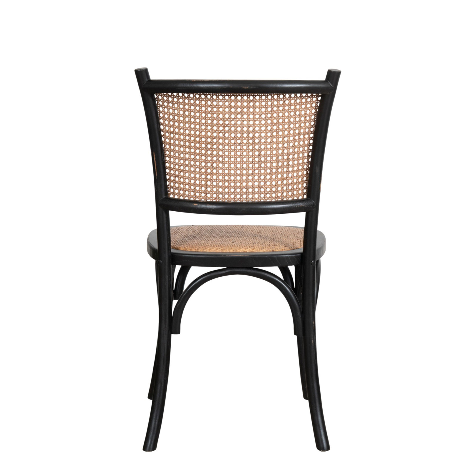 Sedia Thonet in massello e seduta in rattan finitura nero anticata