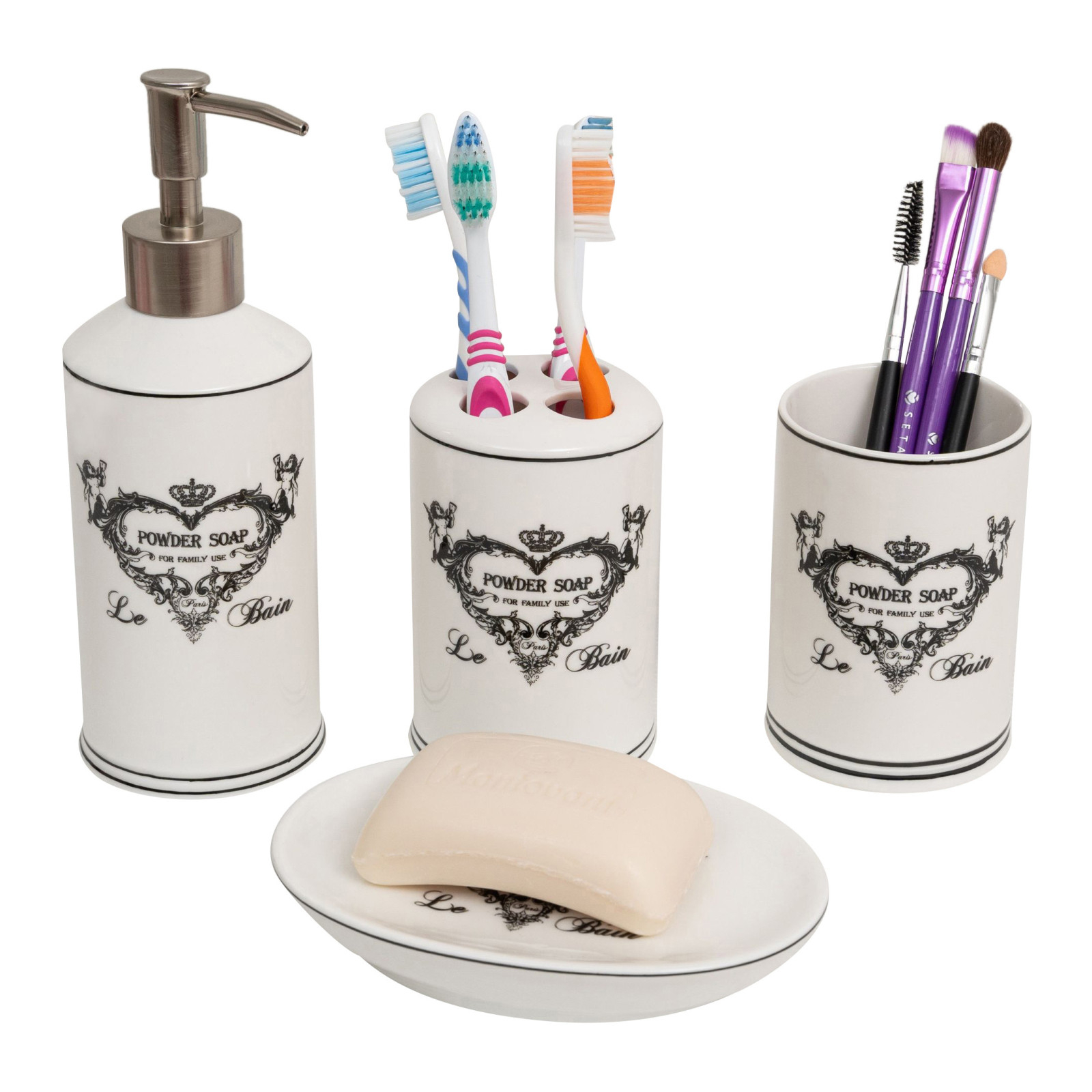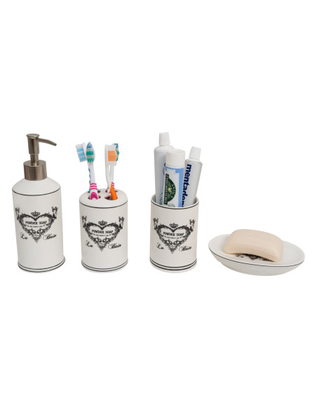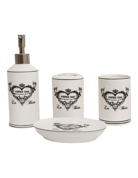 Set bagno "Savons Superfines" 4 pezzi in porcellana bianca decorata L25xPR10xH21 cm