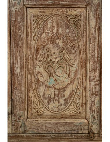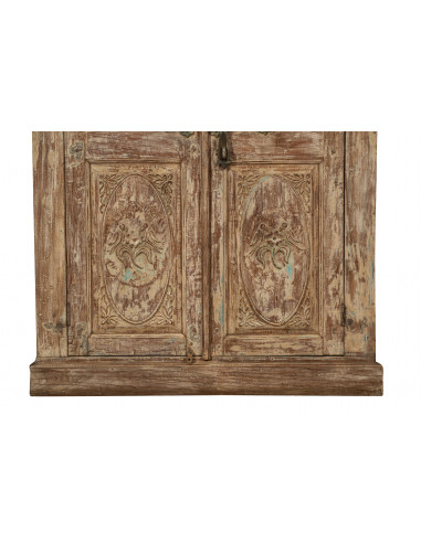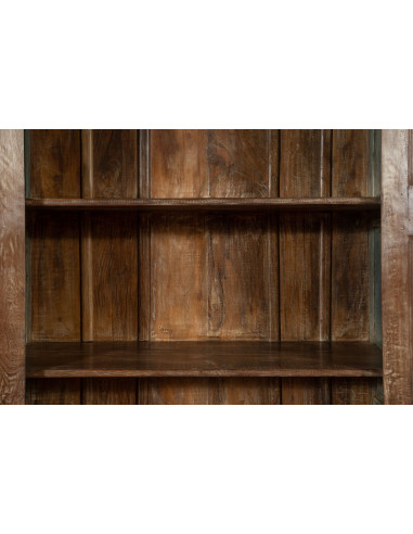 Molto solido e spazioso stipo di dimensioni larghezza 130 cm, profondità 51 cm, altezza 223 cm, multiuso, grazie ai ripiani interni, e di grande impatto estetico. Questo mobile è realizzato prendendo una porta antica e costruito la libreria in legno massiccio su misura.