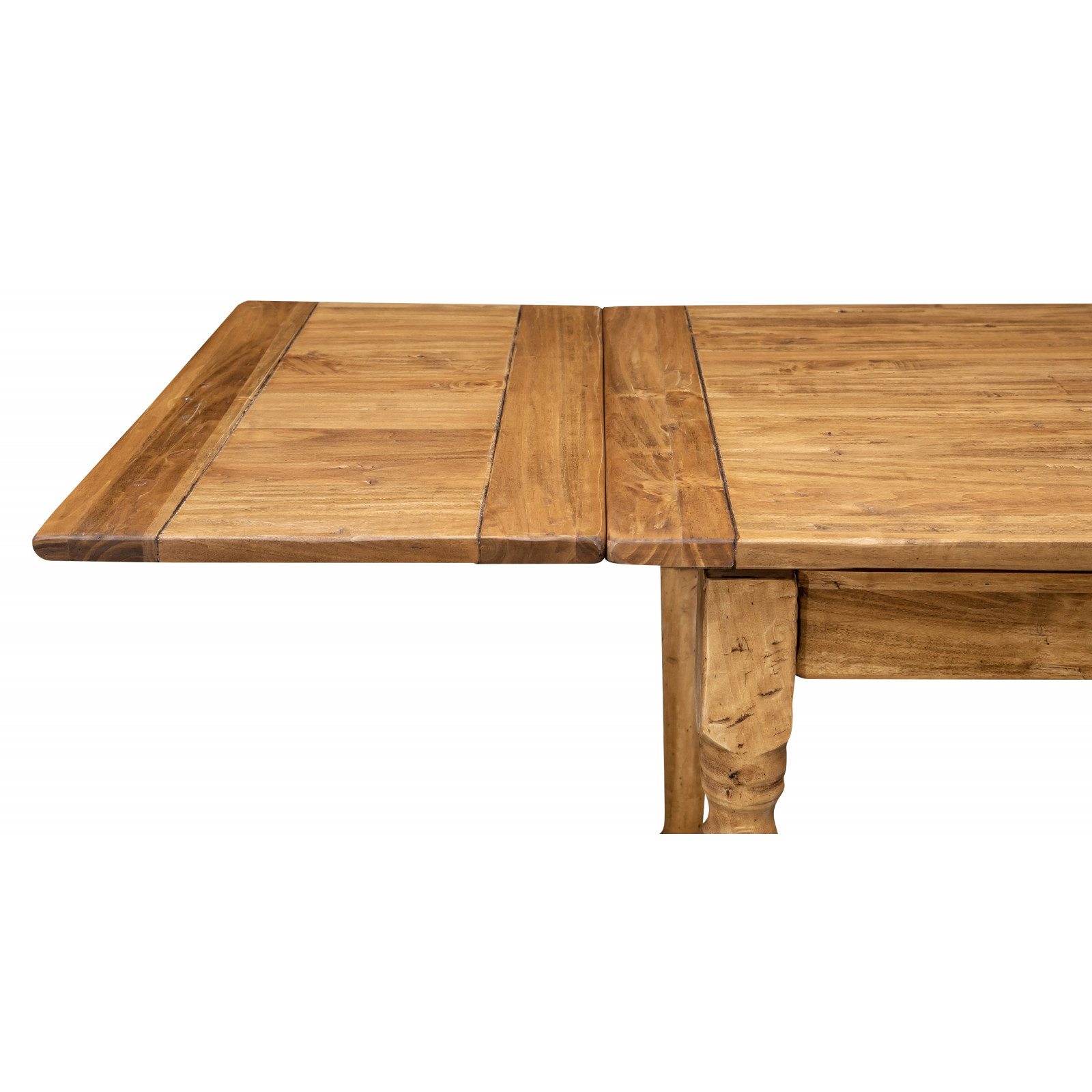 Tavolo rettangolare allungabile larghezza 120 cm, profondità 80 cm, altezza 80 cm realizzato interamente in legno massello di tiglio dotato di due pratiche allunghe da 45 cm ciascuna che permettono di estenderlo fino a 165 o 210 cm. Tutto il fascino dello stile Country è racchiuso in questo tavolo grazie alle forme classiche, risultato di una scrupolosa lavorazione artigianale Made in Italy.