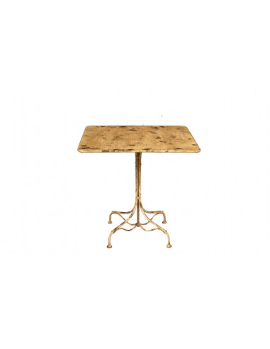 Tavolo quadrato in ferro battuto di dimensioni lunghezza 80 cm, profondità 80 cm, altezza 76 cm totalmente forgiato a mano, molto stabile e robusto con finitura dipinta e invecchiata a mano.