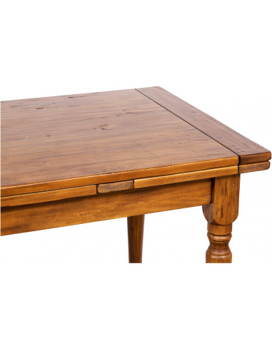 Tavolo rettangolare allungabile realizzato interamente in legno massello di tiglio dotato di due pratiche allunghe da 55 cm ciascuna che permettono di estenderlo fino a 215 o 270 cm. Tutto il fascino dello stile Country è racchiuso in questo tavolo grazie alle forme classiche, risultato di una scrupolosa lavorazione artigianale Made in Italy. Misure: lunghezza 160 cm profondità 90 cm altezza 80 cm. Con una allunga aperta: lunghezza 215 cm. Completamente aperto: lunghezza 270 cm.