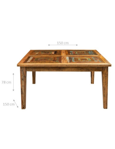 | Tavolo scrivania quadrato realizzato in legno massello vecchio di recupero di dimensioni lunghezza 150 cm, profondità 150 cm, altezza 78 cm. Dipinto completamente a mano con vernici naturali, le molteplici sfumature rendono ogni tavolo un pezzo unico. Per gli amanti dell'arredamento Country, Shabby ecc. e per chi in generale ama arredare casa con rusticità, oltre a questo solido, molto robusto e bellissimo tavolo, Biscottini propone una vastissima gamma di articoli da arredo interni ed esterni, indispensabili per arredare qualsiasi tipo di locali e ambienti. |