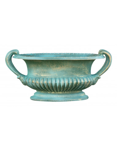Vaso con manici in fusione di ghisa finitura verde anticata