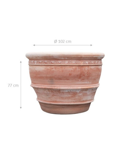 | Vaso interamente realizzato a mano in argilla marnosa toscana, dimensioni diametro 102 cm, altezza 77 cm. La realizzazione e la cottura seguono le antiche tradizioni toscane. La qualità della terra e il sistema di cottura rendono il prodotto molto resistente al gelo e a tutti gli agenti atmosferici. Trattandosi di articoli fatti a mano, che rendono ogni oggetto unico, la finitura potrebbe non essere fedele alla foto. Per gli amanti dell'arredamento country e shabby e per chi in generale ama arredare la propria casa in modo rustico, Biscottini offre una vasta gamma di articoli d'arredo per interni ed esterni, indispensabili per arredare qualsiasi tipo di stanza e ambiente. Tutte le misure si riferiscono all'ingombro massimo dell'articolo. |