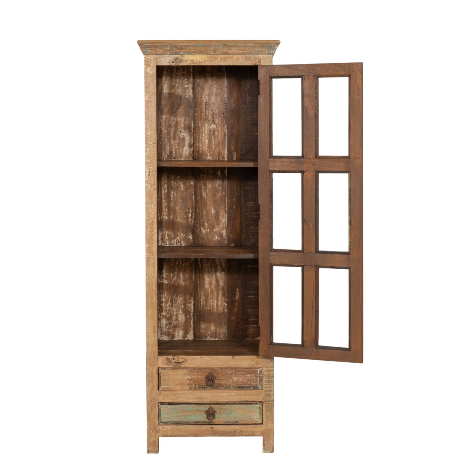 Vetrina in legno massiccio riciclato finitura anticata