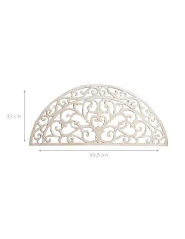 Zerbino mezzaluna di dimensioni L68,5xPR32xH1,5 cm realizzato in ghisa. Finemente decorato, è completo di piedini in gomma. Dal disegno classico, per dare un tocco di eleganza alla vostra casa o all'ingresso del vostro terrazzo
